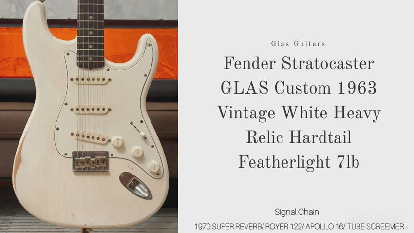 Here we have a Glas Customs Strat- build inspired by the earliest golden-era hardtails — this one a heavy-relic’d, vintage white tone machine with modern edge and vintage soul. It’s part of the GG Fall 2025 “Golden Era” collection and drips with character: relic'd like it lived through every war, yet plays like hot butter. Finished in freeze-checked vintage white nitro with a thin clear topcoat to hold it together — cracked, worn, and vibed-out without ever looking fake. Every detail hand-aged and assembled in Los Angeles.