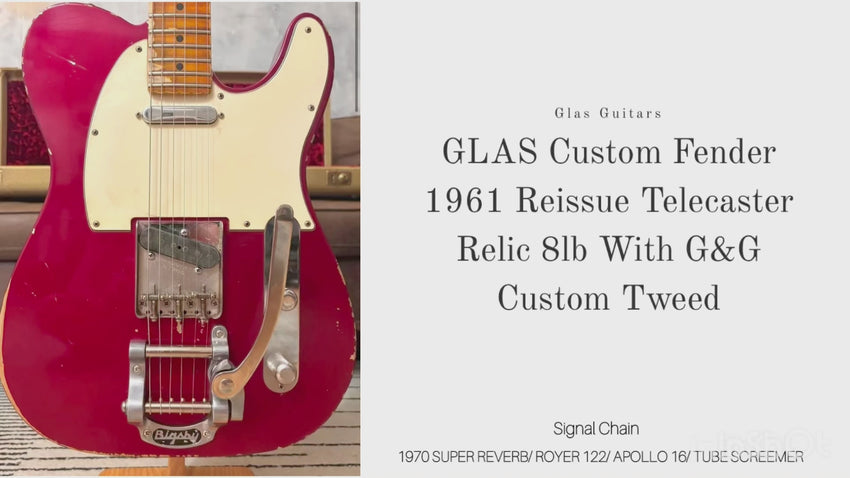 GLAS Custom 1961 Telecaster Relic with Bigsby, in aged Candy Apple Red with a maple neck. Custom relic Tweed G&G case. Handmade right here in glorious L.A.